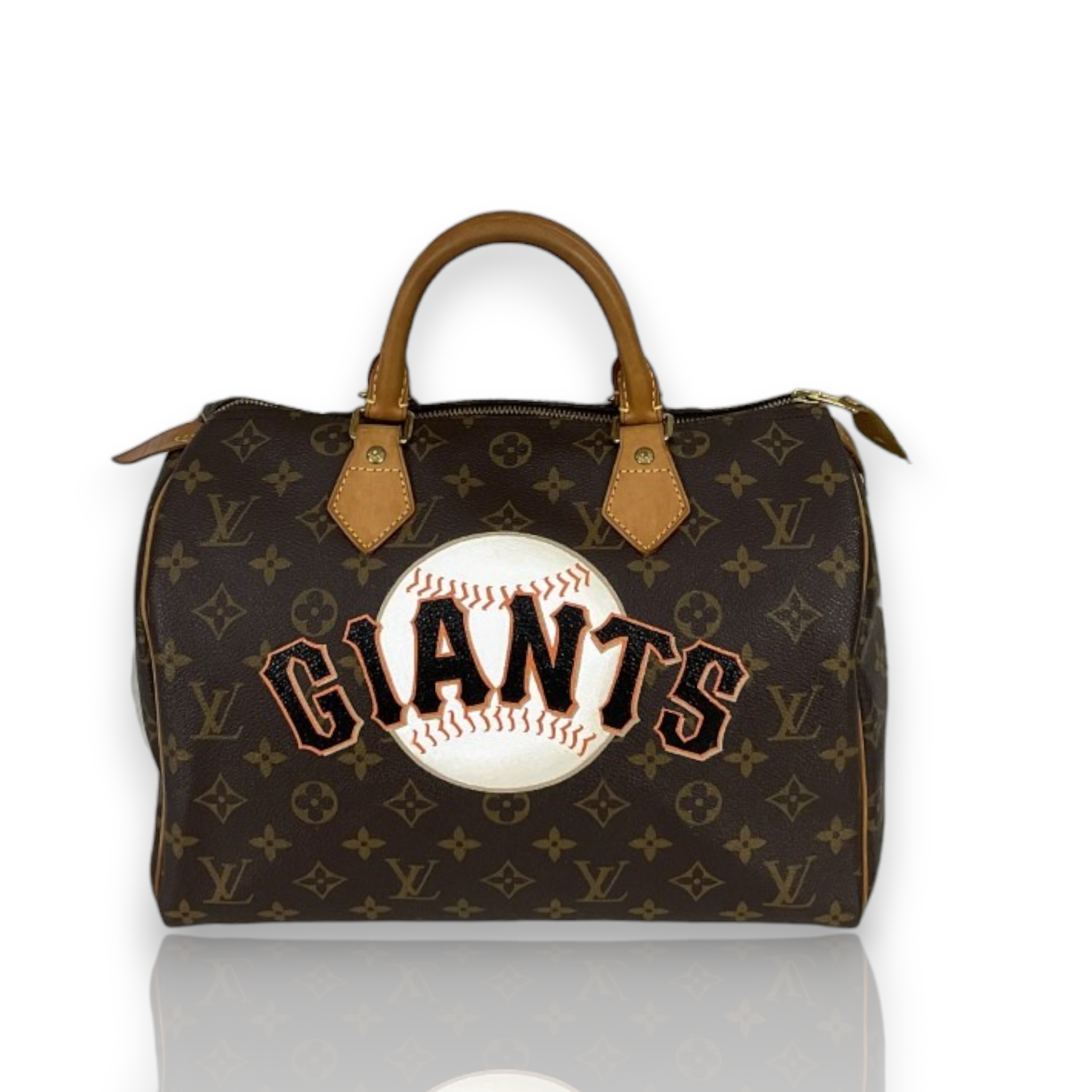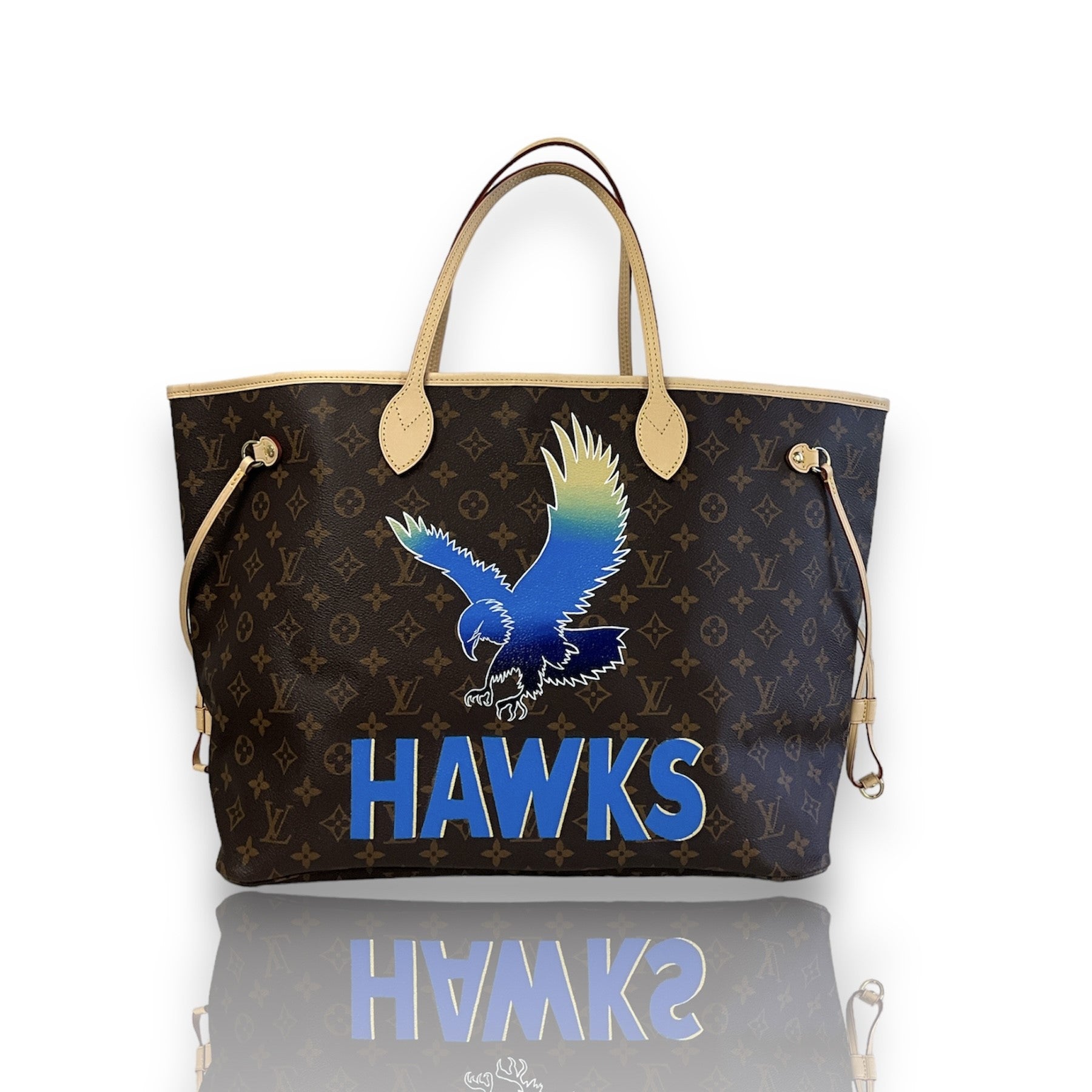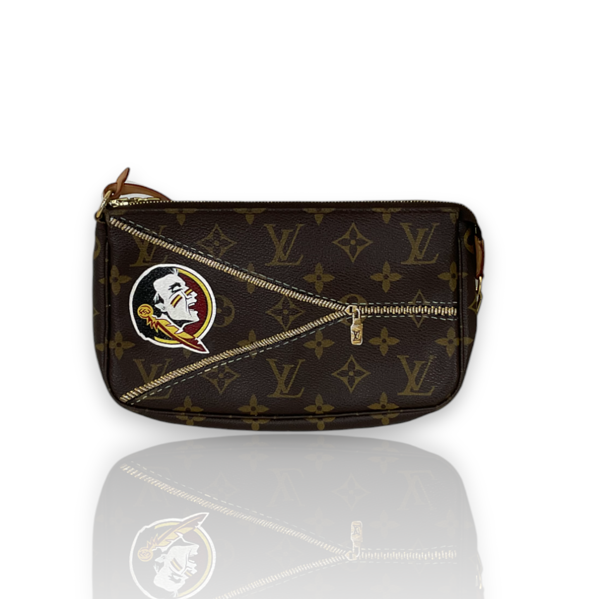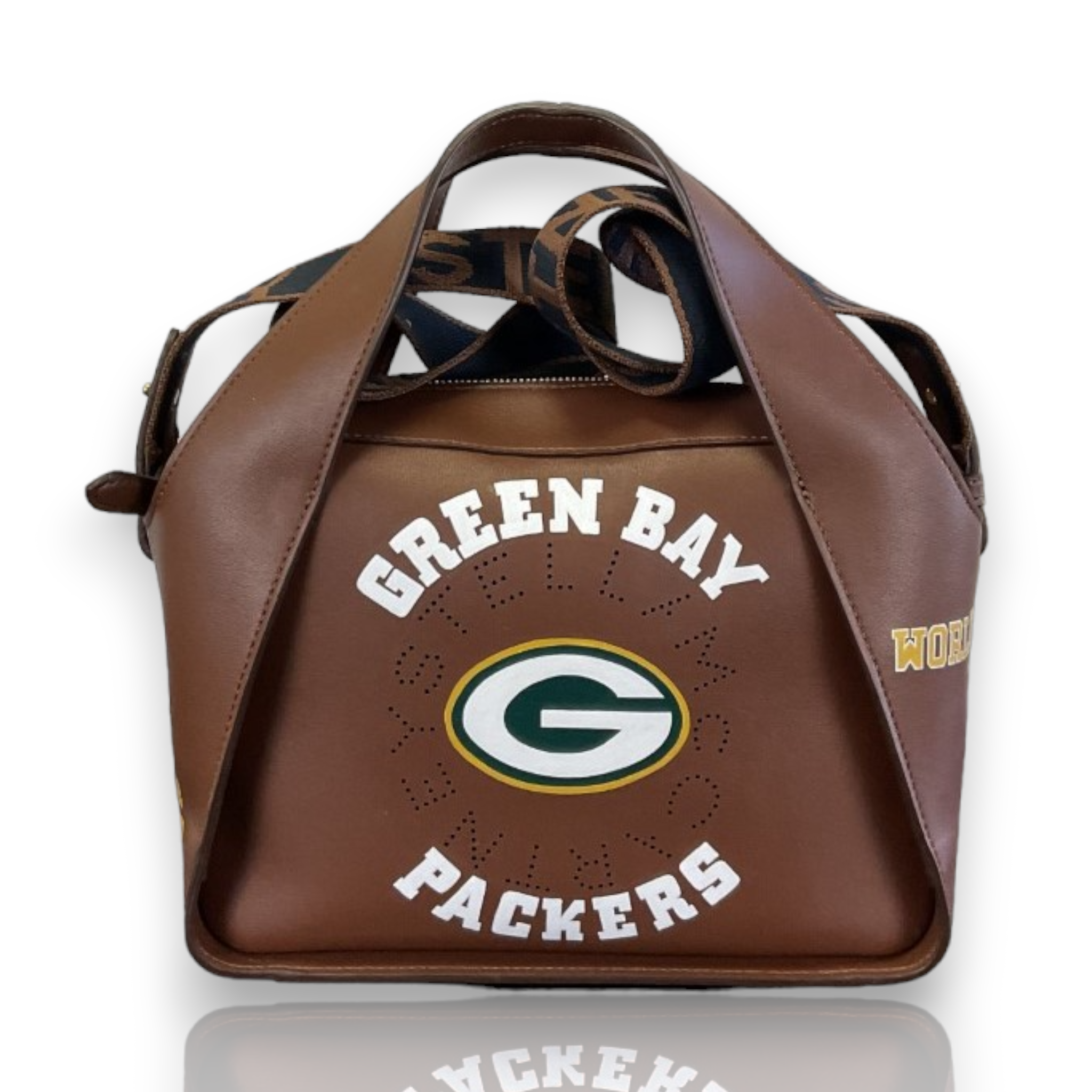 A handbag beautifully embellished with sports emblems and university logos combines the love for team spirit and academic pride, making it the perfect accessory to showcase your passion for both sports and your alma mater.