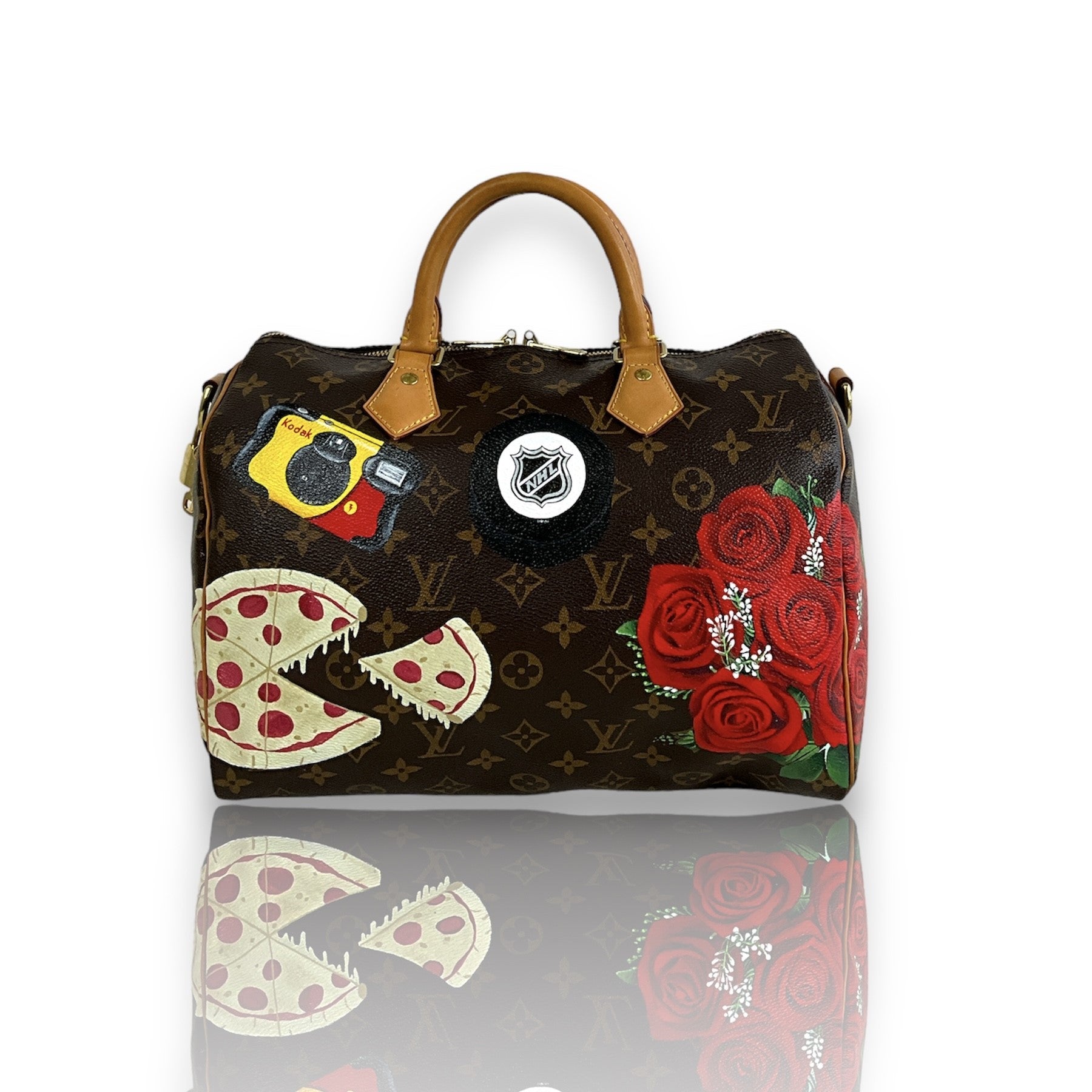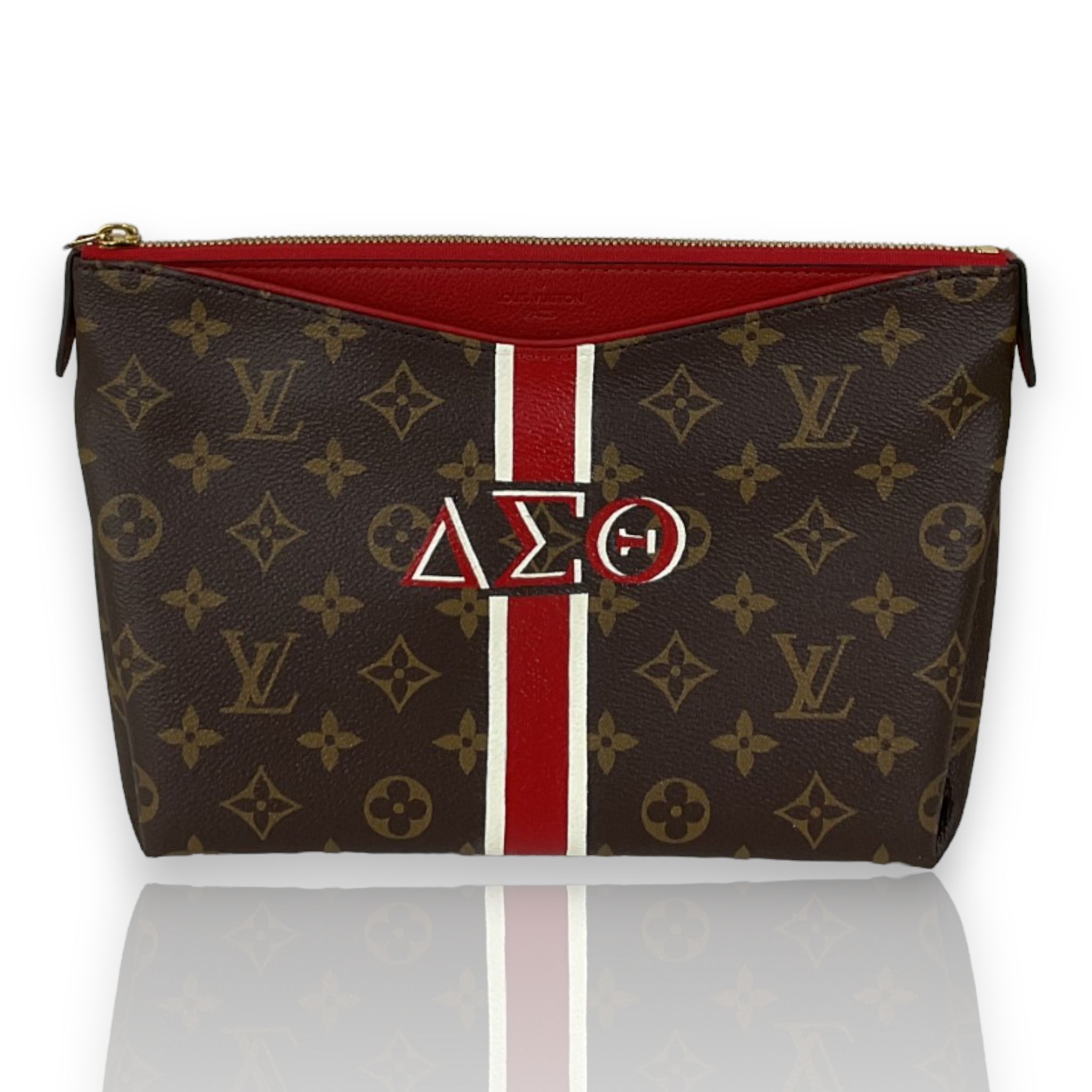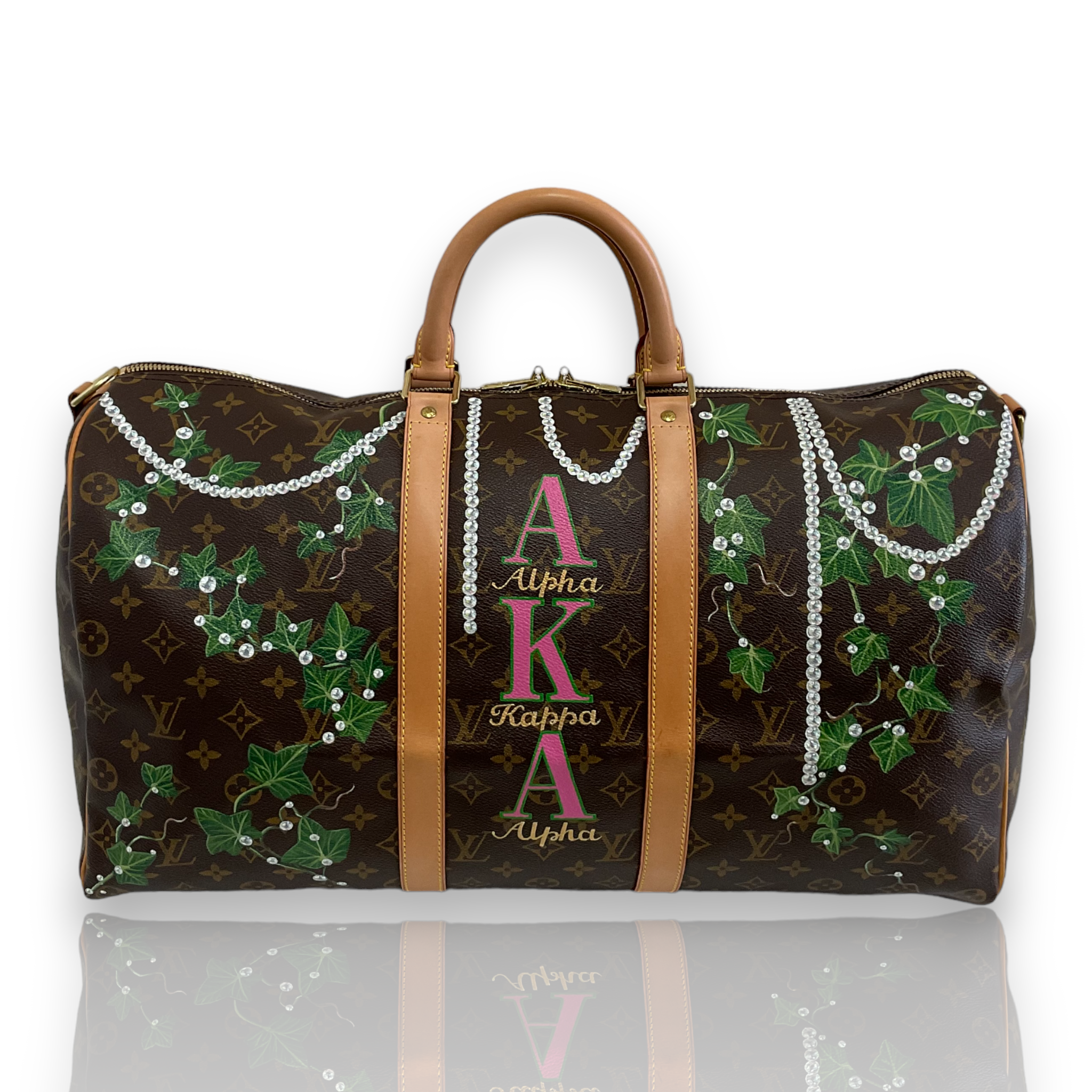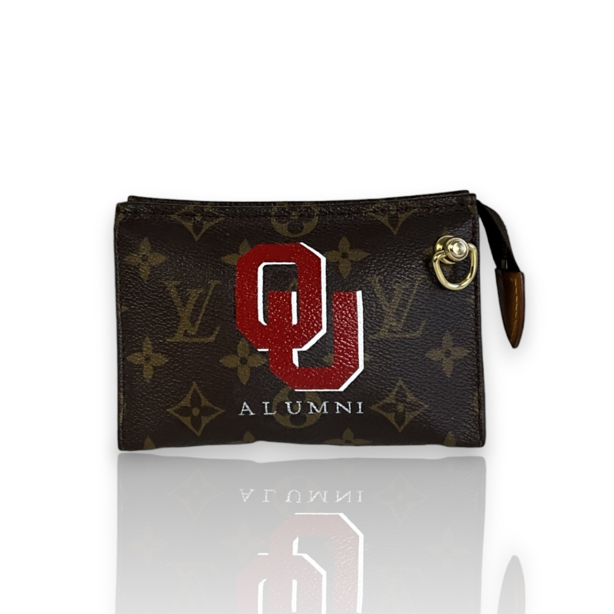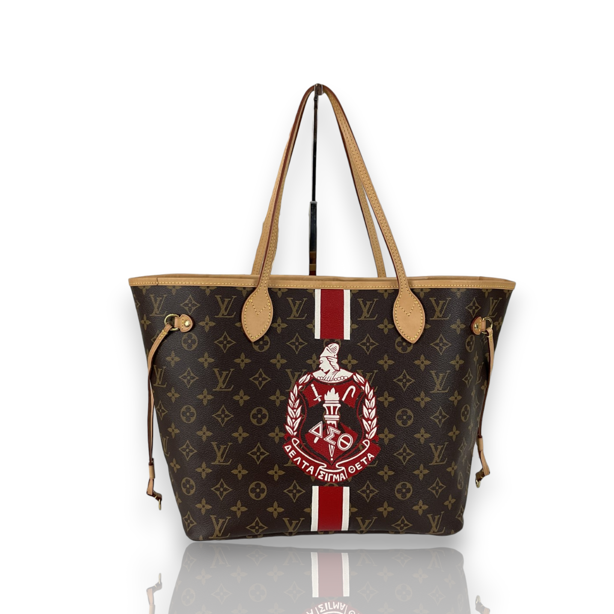A handbag beautifully embellished with sports emblems and university logos combines the love for team spirit and academic pride, making it the perfect accessory to showcase your passion for both sports and your alma mater.