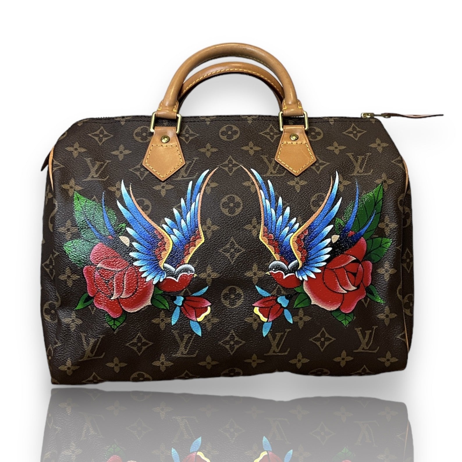 A handbag adorned with intricate designs of wings, featuring birds, butterflies, and other soaring creatures, brings an element of freedom and grace to your style. This enchanting accessory symbolizes the beauty and lightness of nature, making it a unique and eye-catching addition to your ensemble.