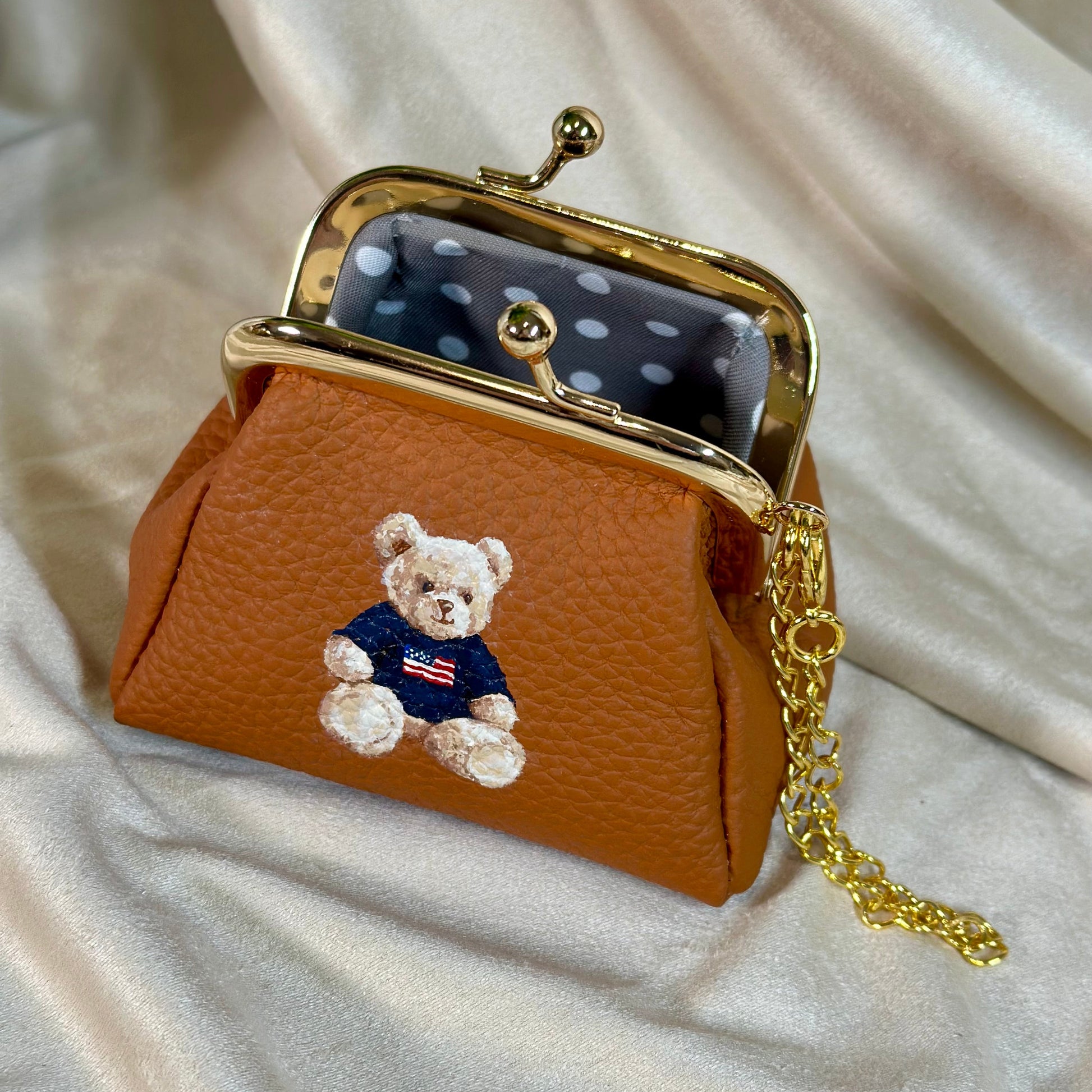 Hand-painted mini change purse is crafted to bring a little joy to your everyday carry. Use it to stash coins, lip balm, or tiny treasures — and let it dangle from your bag as a wearable piece of art. A beautiful keepsake and an unforgettable gift for your best teddy bear lover.