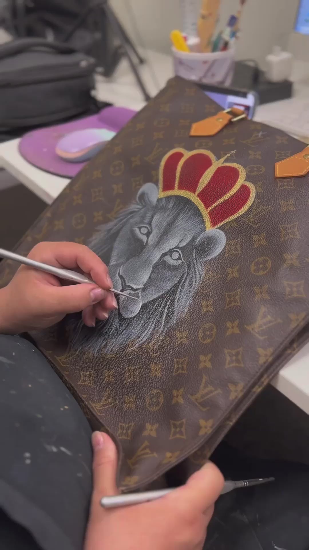 This Louis Vuitton Sac Plat, meticulously hand-painted with our exclusive Royal Lion design, is crafted for the woman who embodies understated strength and enduring elegance. The hand-painted lion motif symbolizes nobility and resilience, adding a distinctive artistic touch to an iconic silhouette. Designed with both style and function in mind, this spacious bag accommodates everyday essentials while maintaining a sleek, structured form. The combination of fine craftsmanship and bold design makes the Royal Lion a statement piece that elevates any ensemble, reflecting confidence and sophistication in every detail.