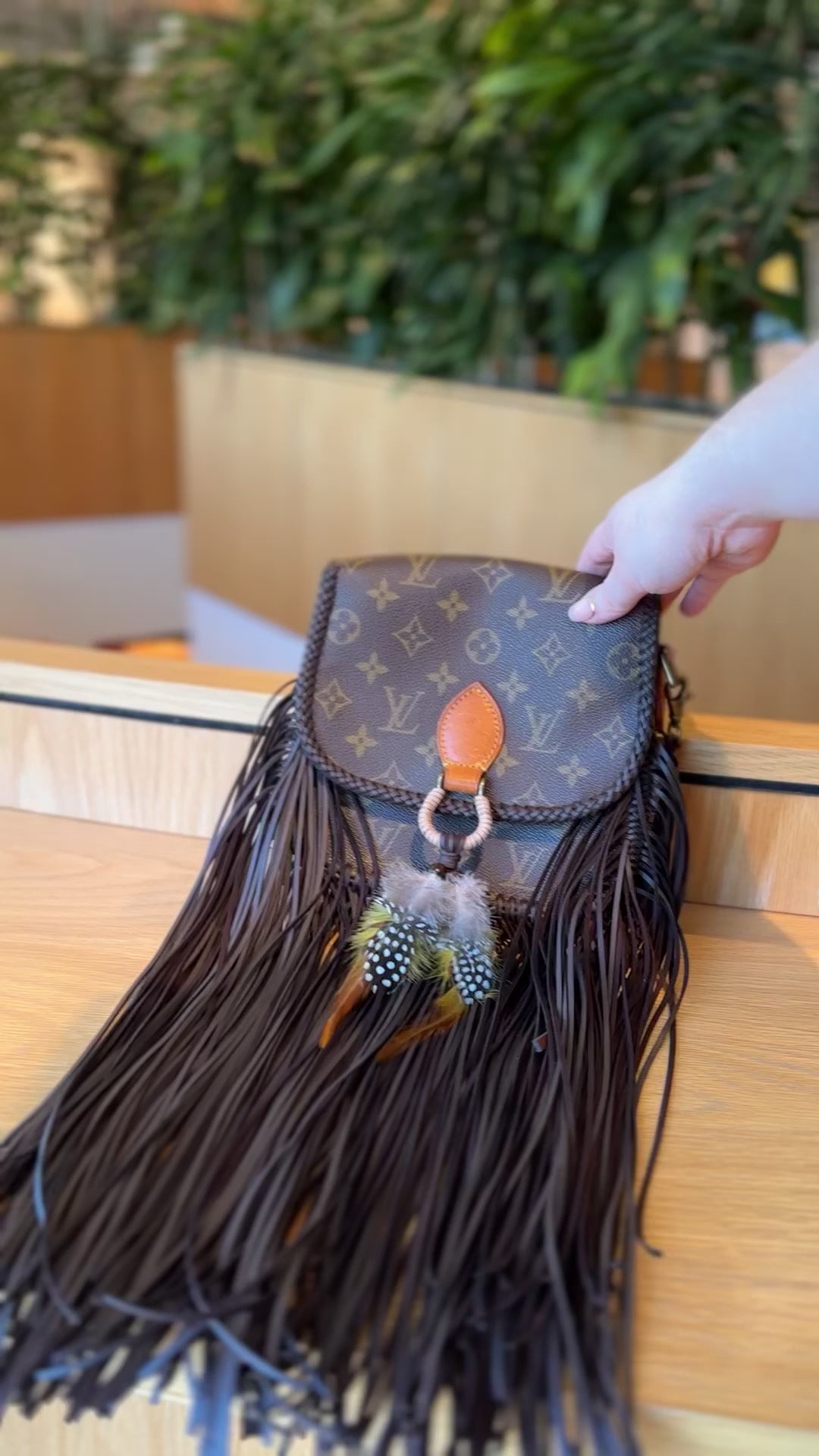 Romantic with a touch of rebellion. This fringed Louis Vuitton Saint Cloud features intricate needlework and bold black fringe, blending soft detail with statement edge. *Feathers may vary slightly in color as they are natural.